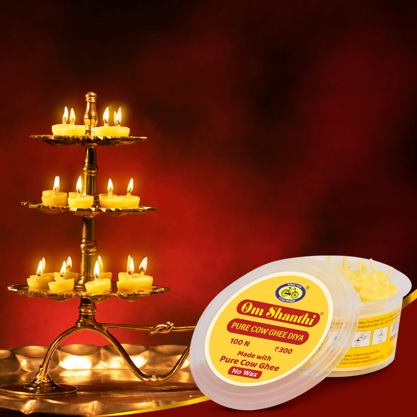 According to the Agni Purana, lighting Cow Ghee Deepam is supposed to increase the sattvic tattva which includes light, bliss and goodness. Sattvic mind is always steady and is blissful internally. It is a practice to light Cow’s Ghee Diya for health, wealth and happiness.